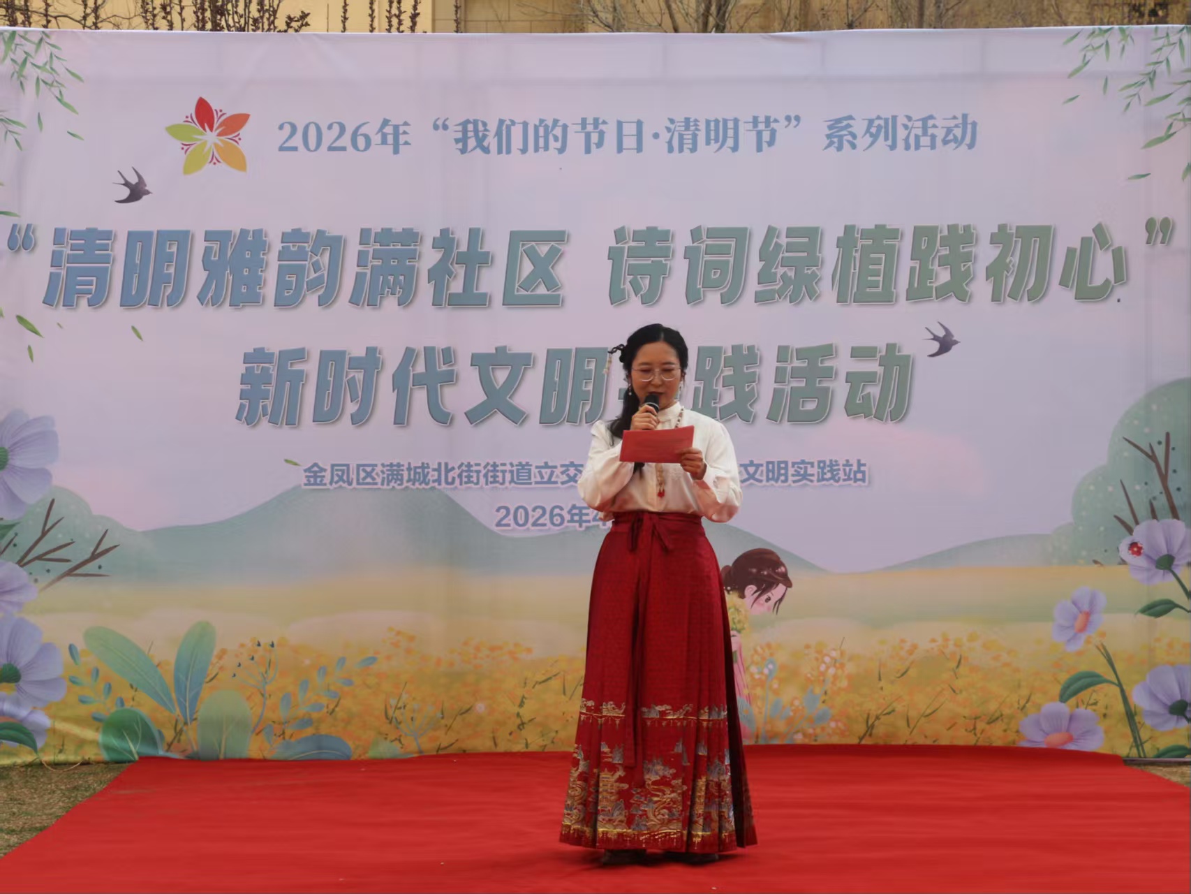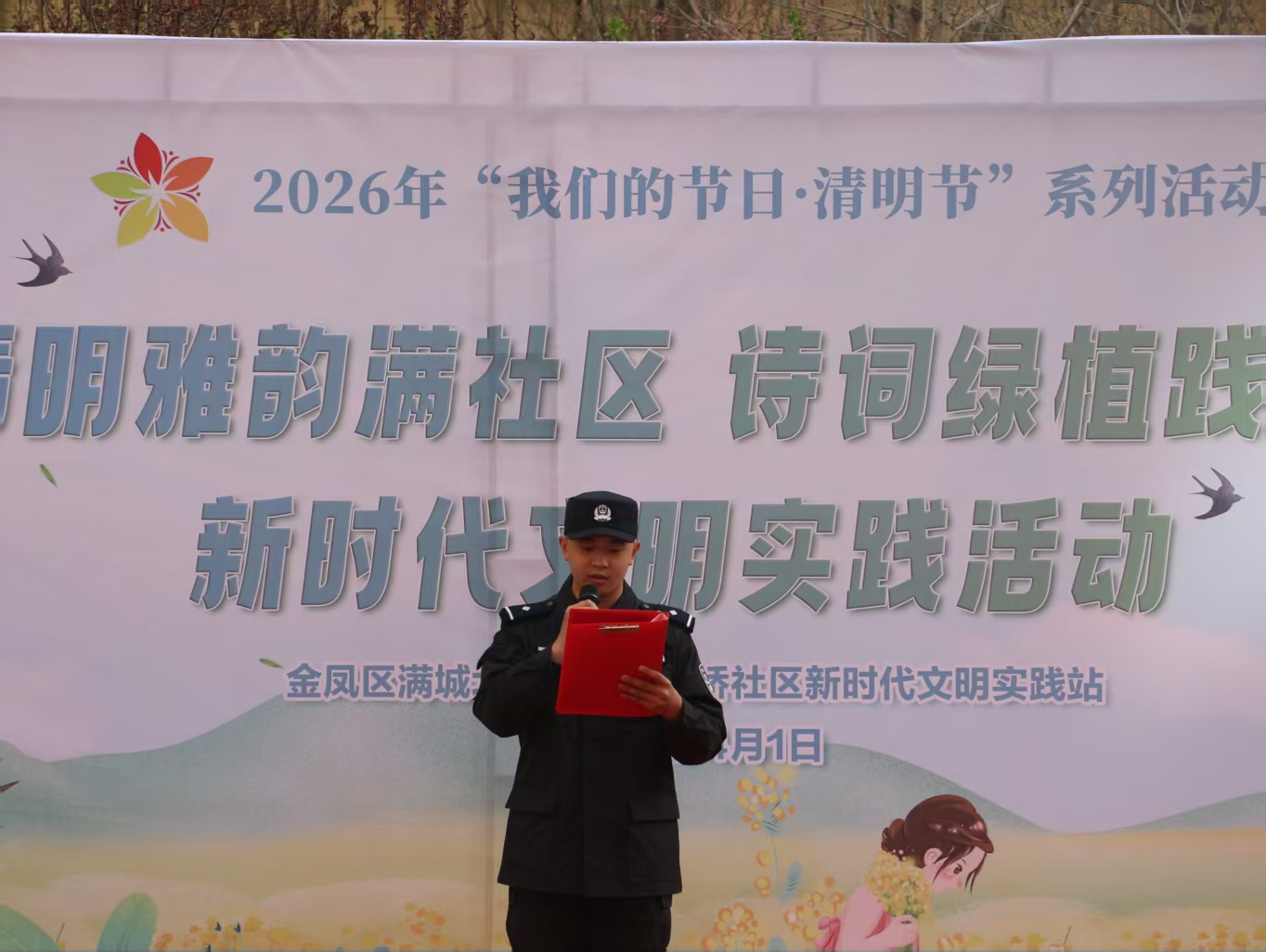 4月1日,银川市金凤区满城北街街道立交桥社区举办“清明雅韵满社区 诗词绿植践初心”主题活动。青年马克思主义者学习联合会应邀参加,金凤区融媒体中心记者到场进行采访报道。