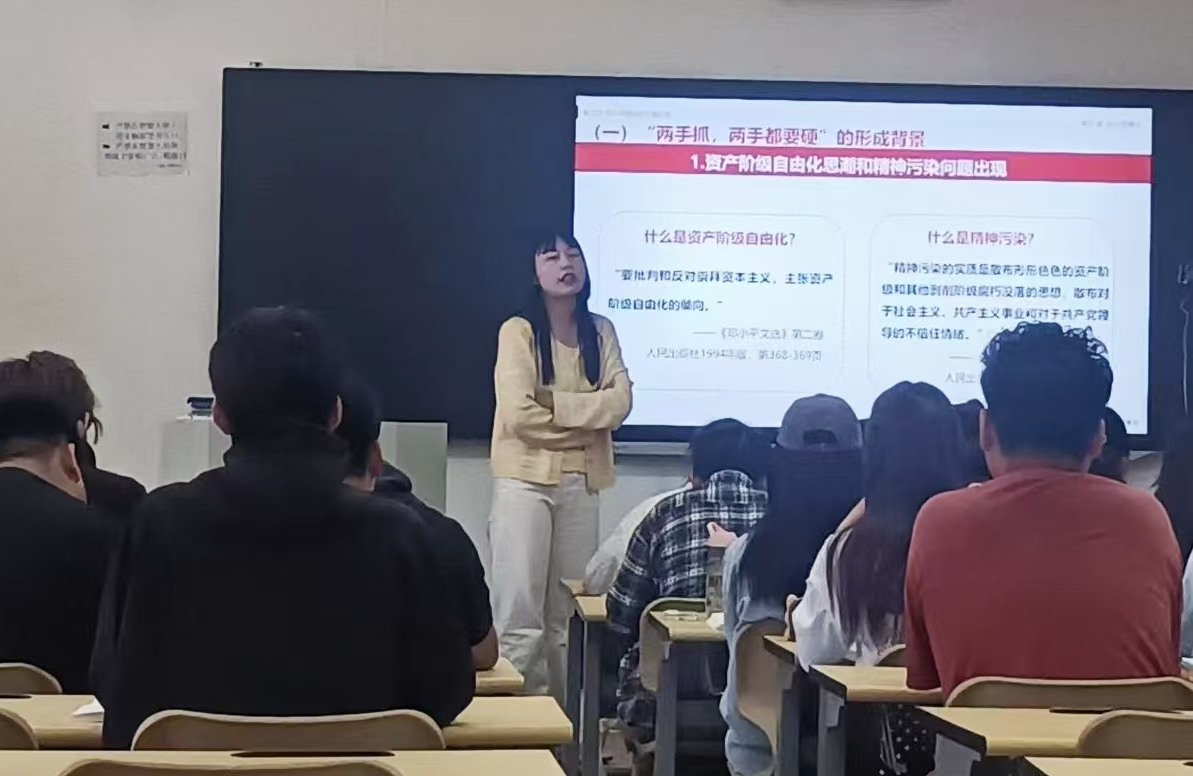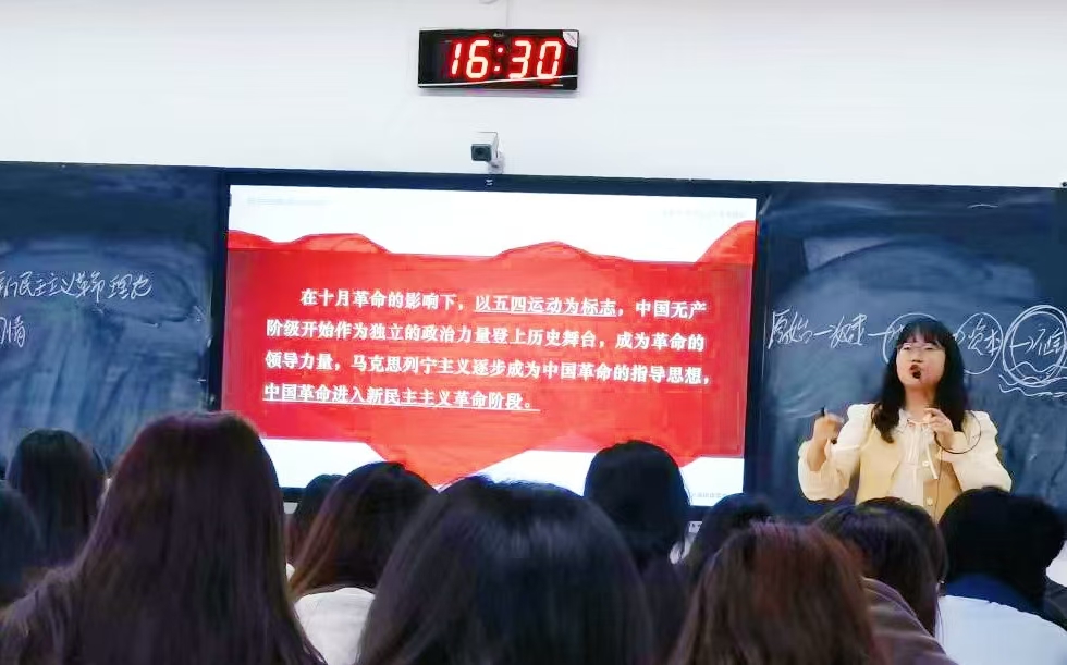 杨婧老师巧妙借助多媒体设备,引用经典影视资,将抽象理论具象化,引导学生更直观理解革命历史,激发学习兴趣;马丽老师创新运用多元教学方法,组织学生开展角色扮演、借助“雨课堂”平台,引导学生在互动与思辨中掌握理论学习;杨小霞老师将习近平新时代中国特色社会主义思想有机融入课程教学,实现了价值引领与知识传授的同频共振;贺芳芳老师注重师生互动,理论联系实际,层层递进,引导学生积极参与到课堂活动中;其他老师展示了匠心独运的个人风采。
