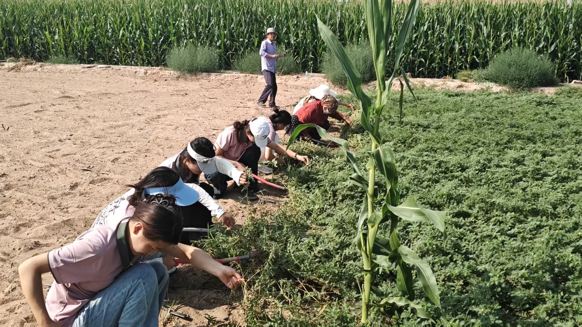 团队与当地农民互换身份,亲手参与葡萄采摘、萝卜地除草、割蒺藜和运输西瓜,在劳作中学习作物栽培技术。其中,药材蒺藜的降压、抗衰老等功效令队员们惊叹不已。通过劳动实践,大家不仅感受到农民的辛劳,更认识到闽宁镇经济作物的多样性和农业发展的无限潜力