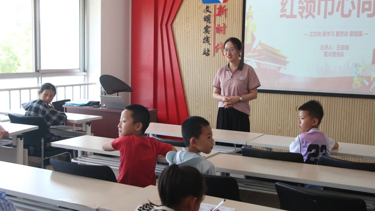 7月,屋外热浪阵阵,屋内文昌南路社区三楼会议室化身“红色剧场”,“演绎英雄故事,传承红色基因”主题活动在此启幕。“同学们,红领巾为什么是红色的?”王娟娟老师的提问刚落,孩子们齐声应答:“是革命先烈的鲜血染红的!”稚嫩却坚定的声音,瞬间牵起跨越时空的精神对话。