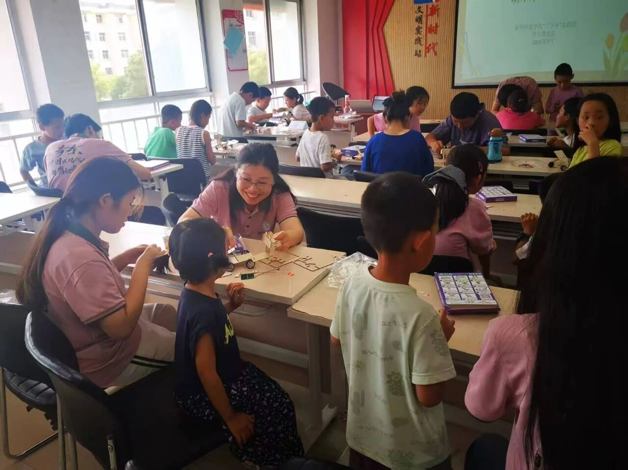 理论之后,是拼装实践——吉普车与月球车零件在桌上铺开,队员们俯身指导:“先拼底盘,再装车轮”“这个接口要对准卡槽”。孩子们的小手在零件间穿梭,皱眉琢磨、豁然开朗、欢呼雀跃……当一辆辆“成果”组装完成,自豪感在小脸上绽放。“我以后要造能上火星的车!”一个男孩举着作品喊道,眼里闪着憧憬的光。