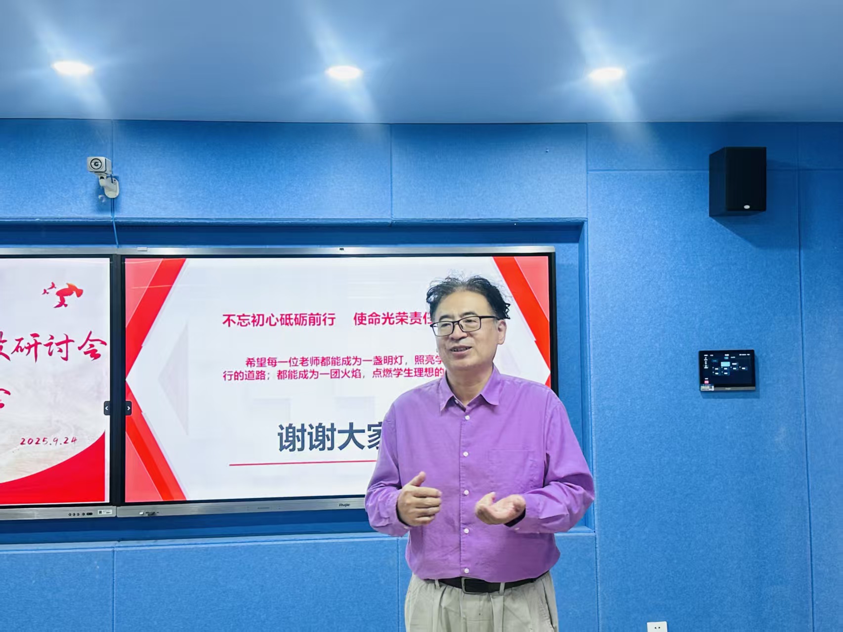 伏晓春院长在总结中强调,本次培训会是一堂有深度、有温度的思政课,通过系统讲解与案例分析,让全体教师深刻把握师德师风建设的政治内涵与时代价值,凝聚育人思想共识;也是一场聚焦思政教师成长的专题培训课,精准回应师德师风提升需求,既划定职业操守“红线”,也明确道德追求“高线”,为教师涵养教育情怀、强化责任担当提供清晰路径;更是一次推动思政课提质的方法提升会,从教学理念革新到数智技术应用,从课堂管理优化到评价体系完善,为教师破解教学难题、提升育人实效提供有力支撑。