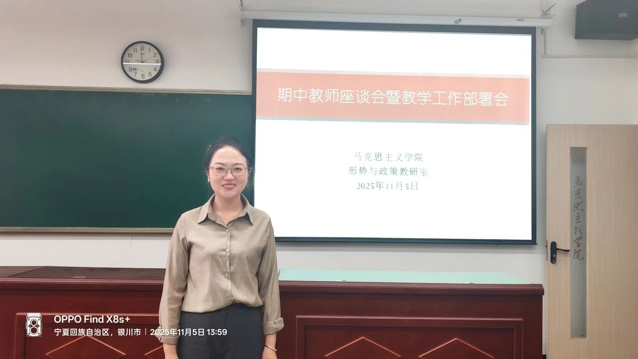 为进一步提升教学质量、精准掌握学生学习动态、切实解决教学工作中的实际问题,形势与政策教研室以“发现问题、解决问题”为核心导向,于11月5日在A1-505教室召开期中教师座谈会暨评课会。会议由教研室主任王娟娟主持,全体专、兼职教师参会。