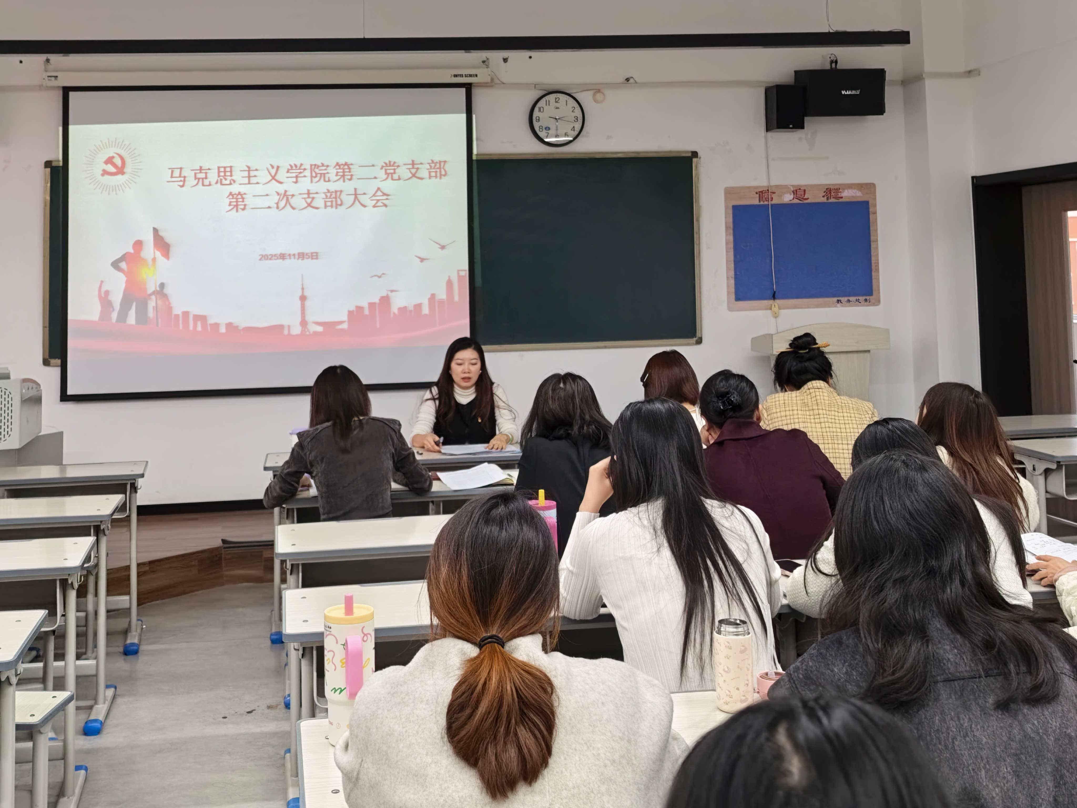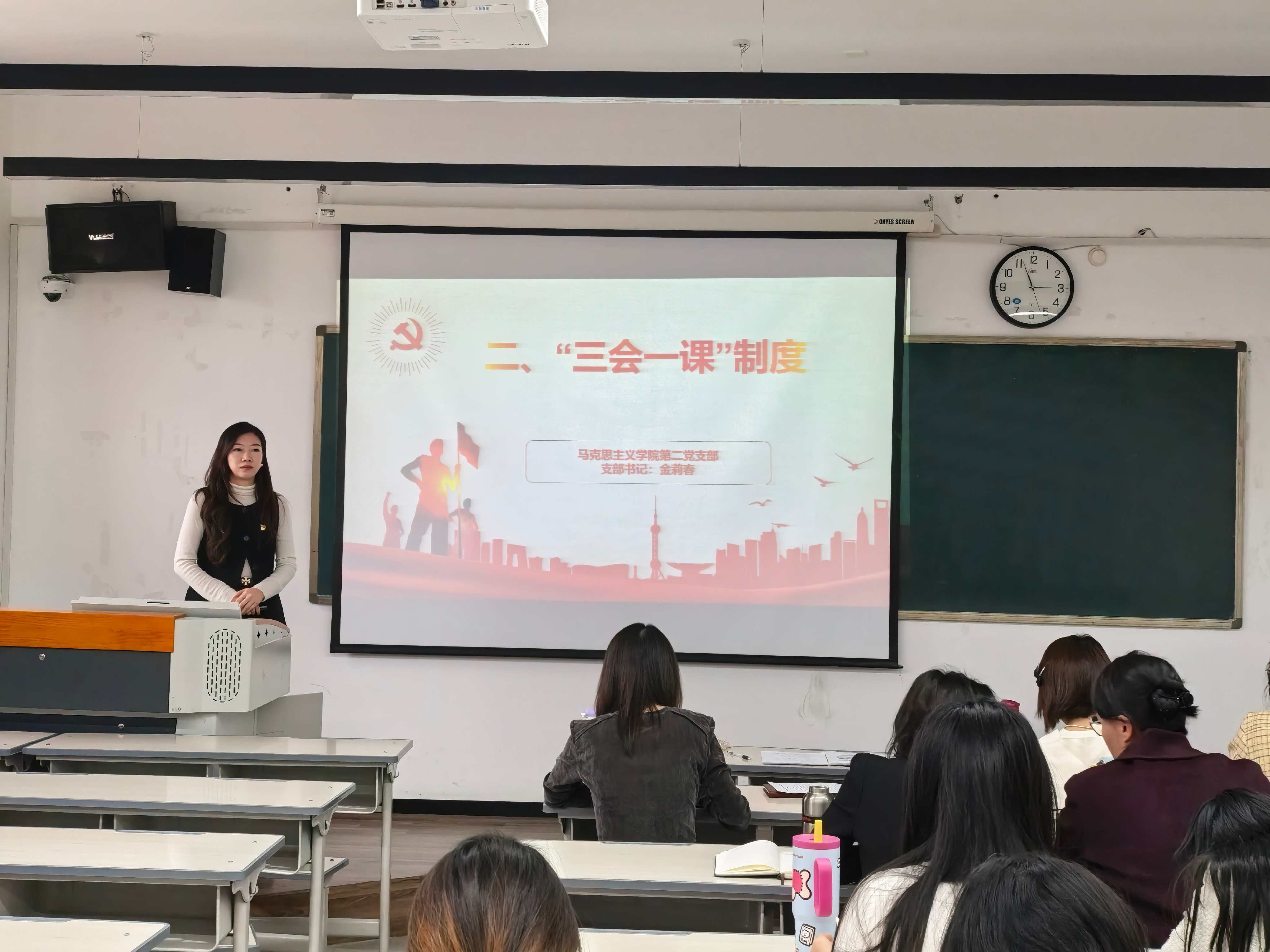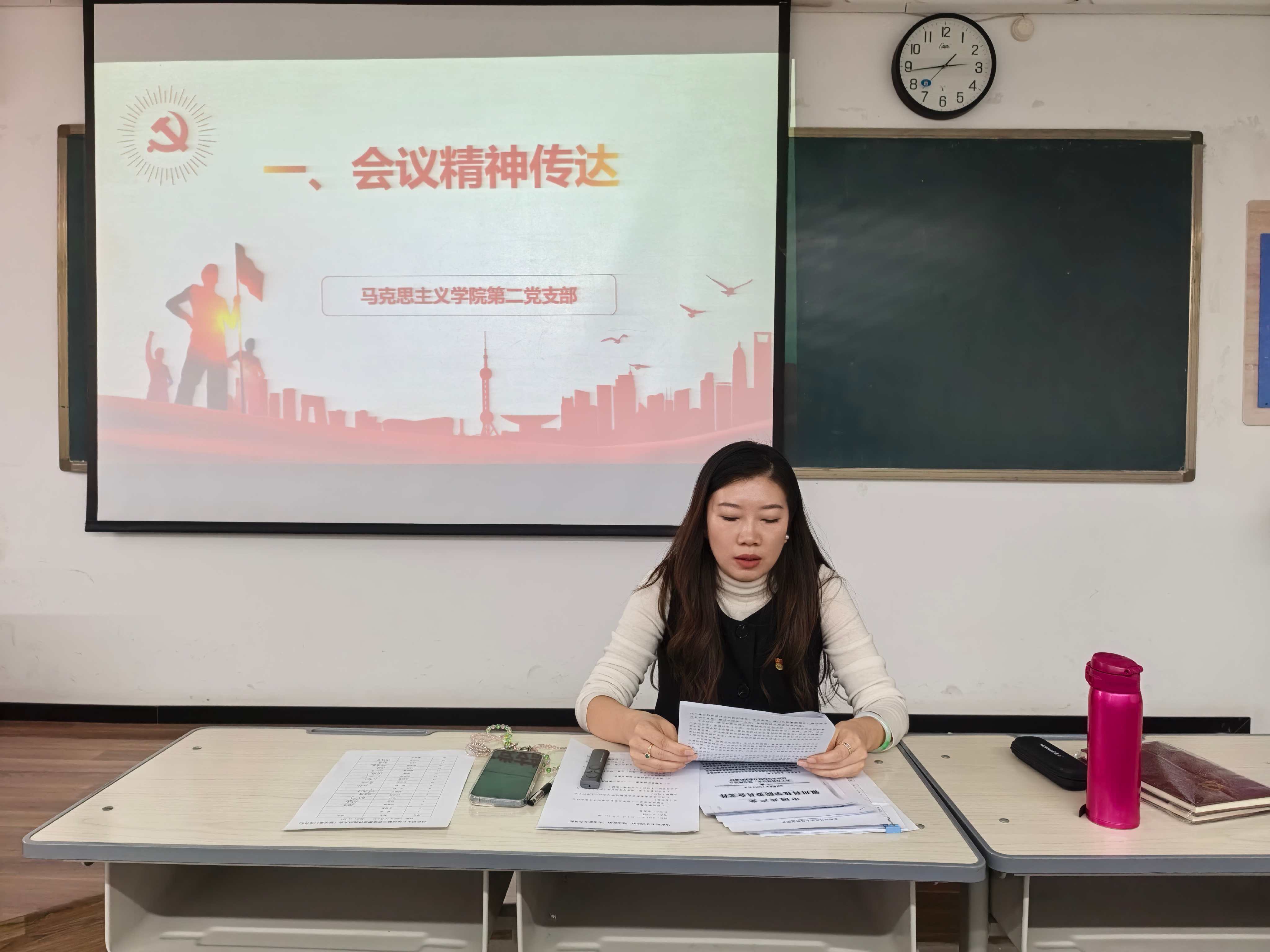 为扎实推进基层党组织建设,强化党员教育管理,提升组织生活质量,马克思主义学院第二党支部于2025年11月5日下午14:30分在A2-501教室组织召开专题学习会。会议由党支部书记金莉春同志主持,支部全体党员参加。本次会议围绕两大主题展开:一是传达学习党的二十届四中全会精神,二是由金莉春书记讲授“三会一课”制度专题党课,整场会议内容充实、氛围庄重,取得了良好的学习效果。
