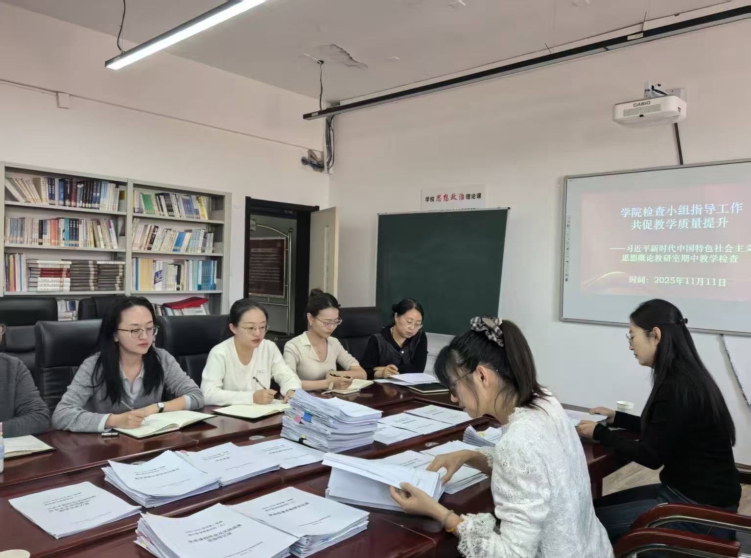 此次期中教学检查,马克思主义学院从部署到落实,环节紧密、推进高效,通过教师自查、小组互查、教研室核查、学院督查的多层级检查模式,全面摸清了教学运行现状,梳理了分层教学实施中的重点难点,推动 查问题与促提升深度衔接。下一步,学院将系统整理检查过程中的各类材料,形成详实的总结报告与问题整改清单,精准对接学校资源支持,持续优化教学管理与育人举措,以扎实的工作成效推动马克思主义理论教学质量再上新台阶。