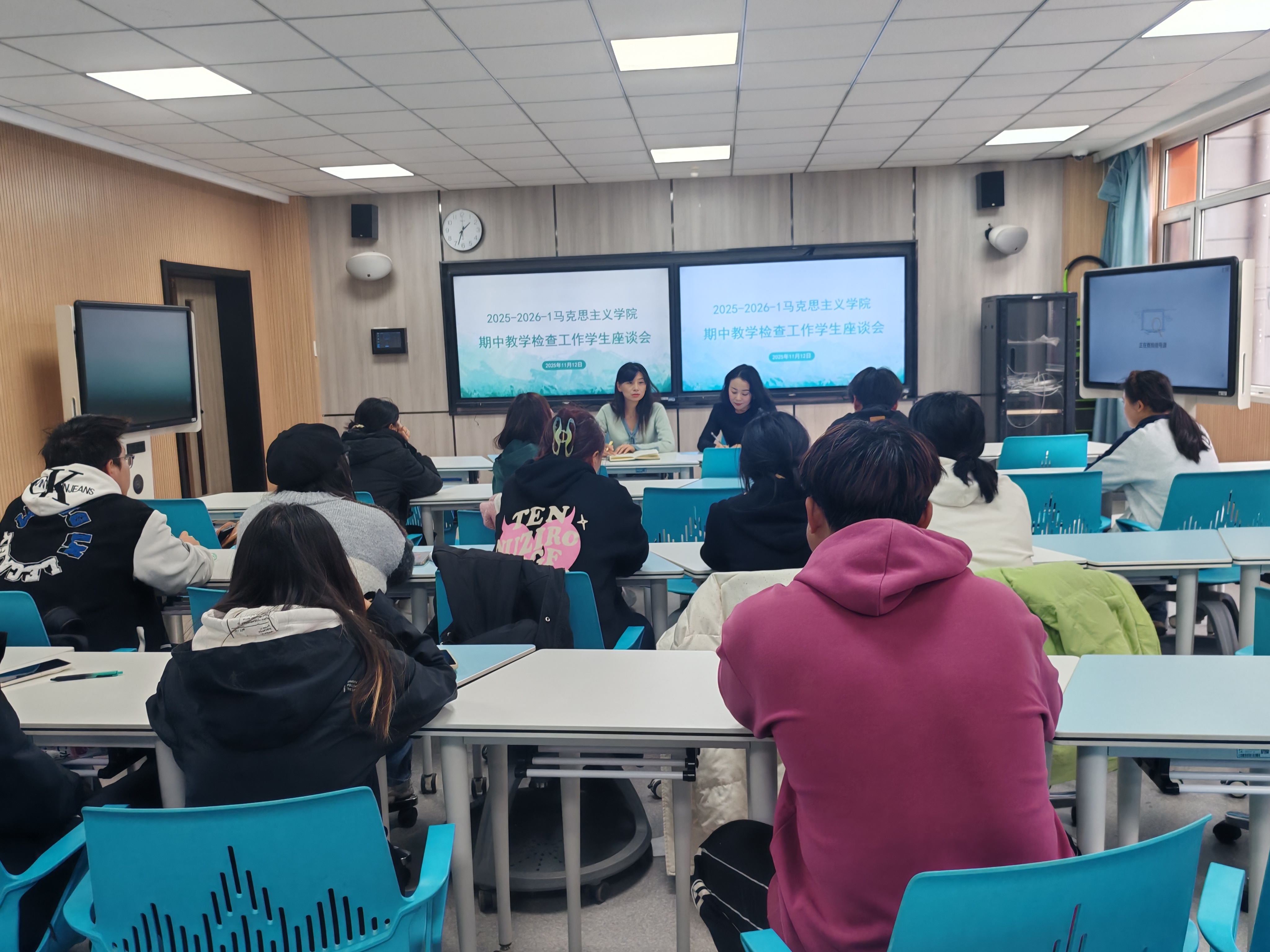 11月12日下午,学院组织召开学生座谈会,兼顾不同年级与专业的 学生代表参会。学生们围绕教师课堂授课质量、课堂管理成效、课程作业布置等方面畅所欲言,既反馈了学习中遇到的实际问题,也对前排就坐倡议、作业考核方式等提出了合理化建议。学院领导与教学管理人员认真倾听、详细记录,现场回应学生关切,充分展现了以学生为中心的育人理念与积极负责的工作态度。