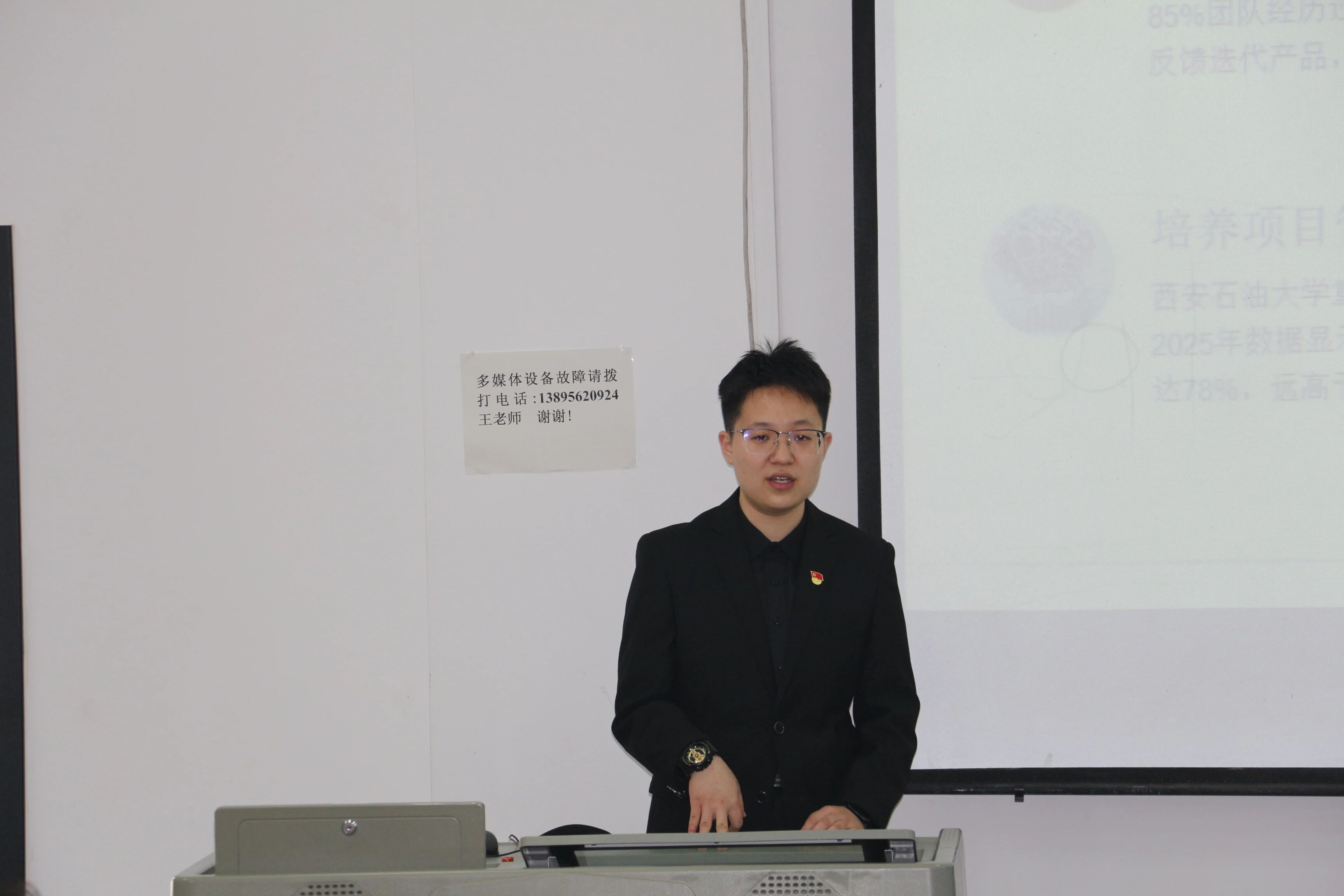 在思政宣讲环节,主讲人马良选取马克思主义基本原理中的科学实践观,以“马克思主义实践观的时代内涵”为切入点,从“实践是认识的来源”“实践是检验真理的唯一标准”“实践是认识发展的动力”三个维度,系统解读了科学实践观的理论根基与核心要义。同时联系大学生的生活实际,从各个方面,结合学科竞赛案例与专业知识,详细的讲述了对于大学生而言什么是科学实践观,以及科学实践观对大学生的意义与帮助。宣讲过程中生动有趣,现场氛围积极活跃。
