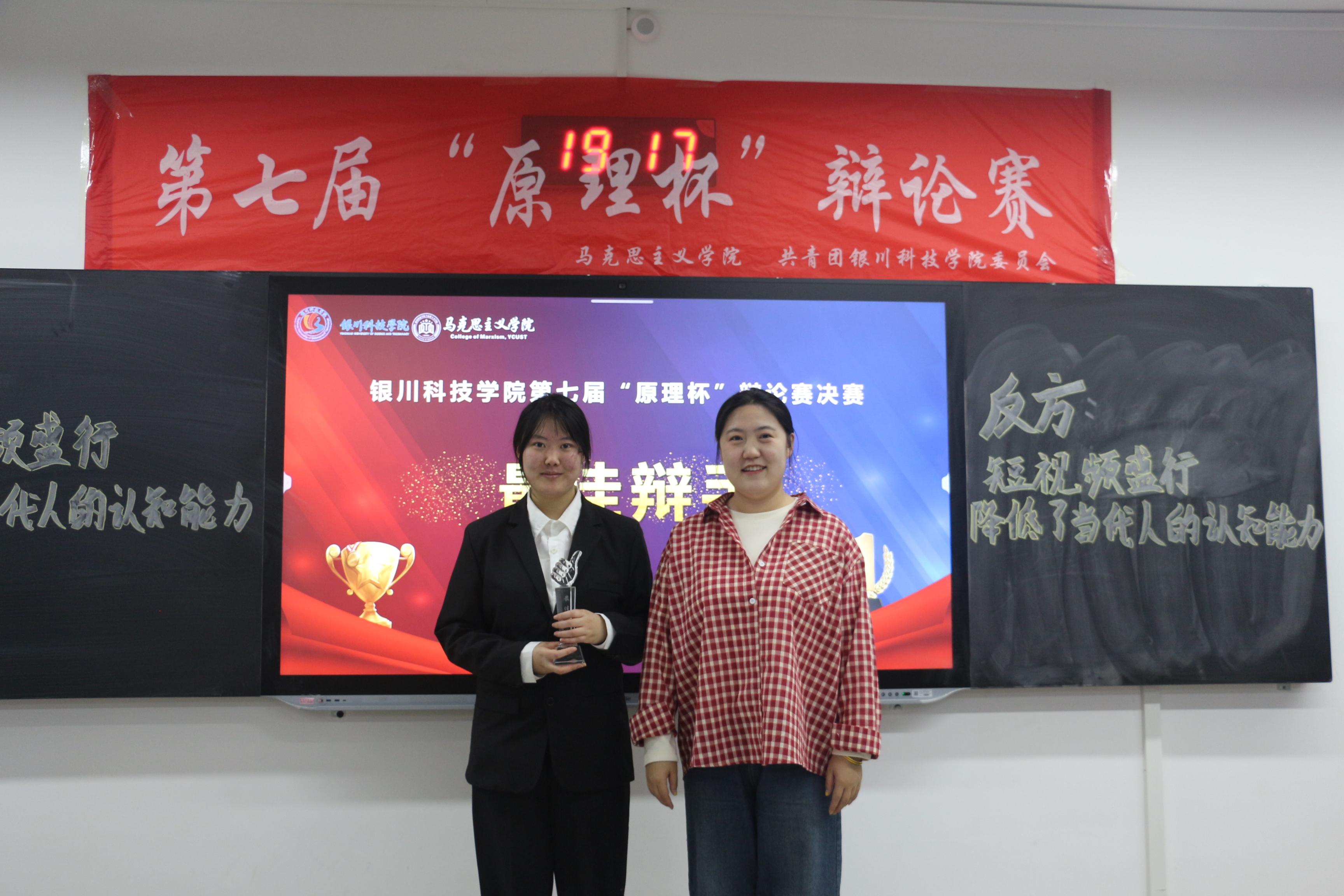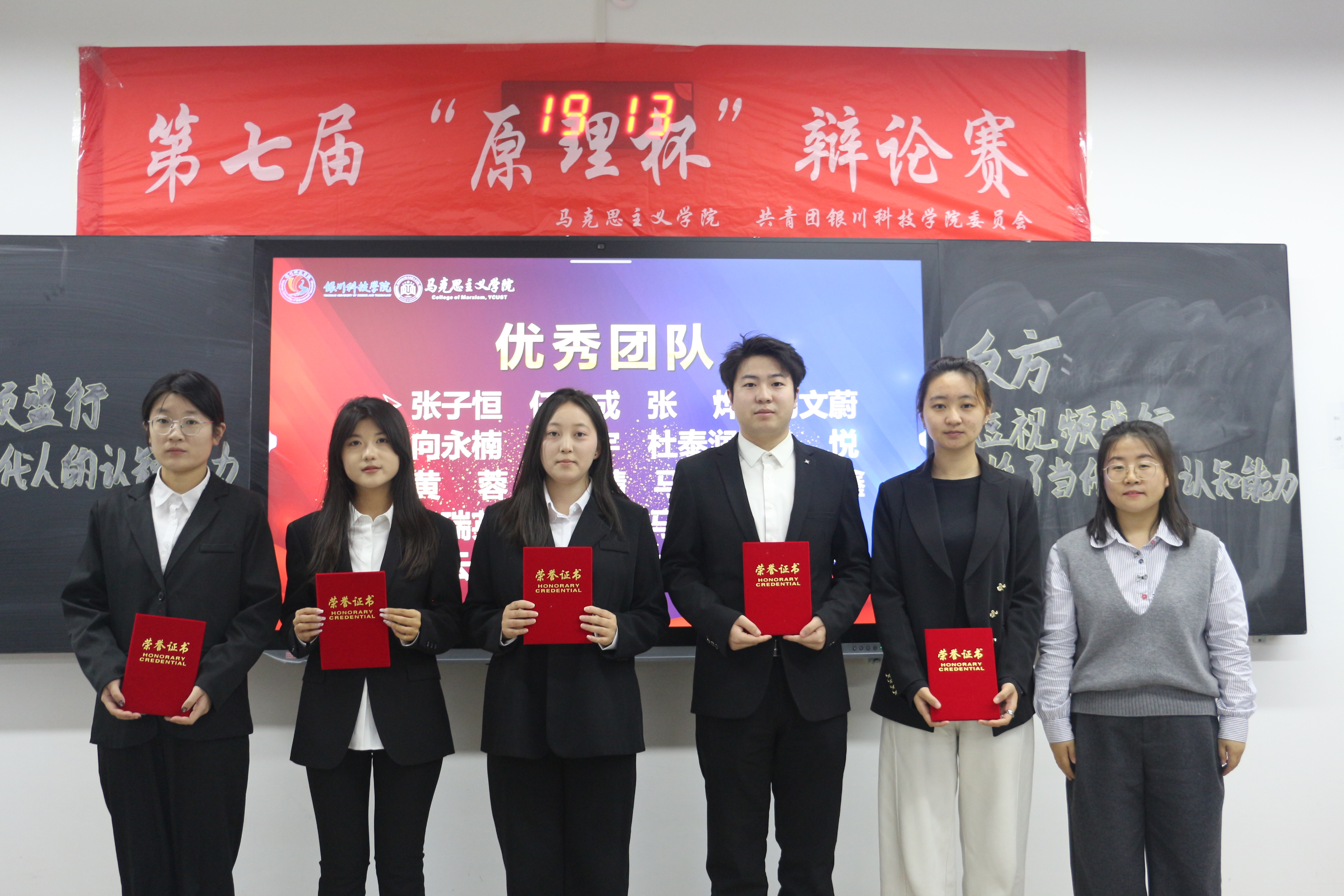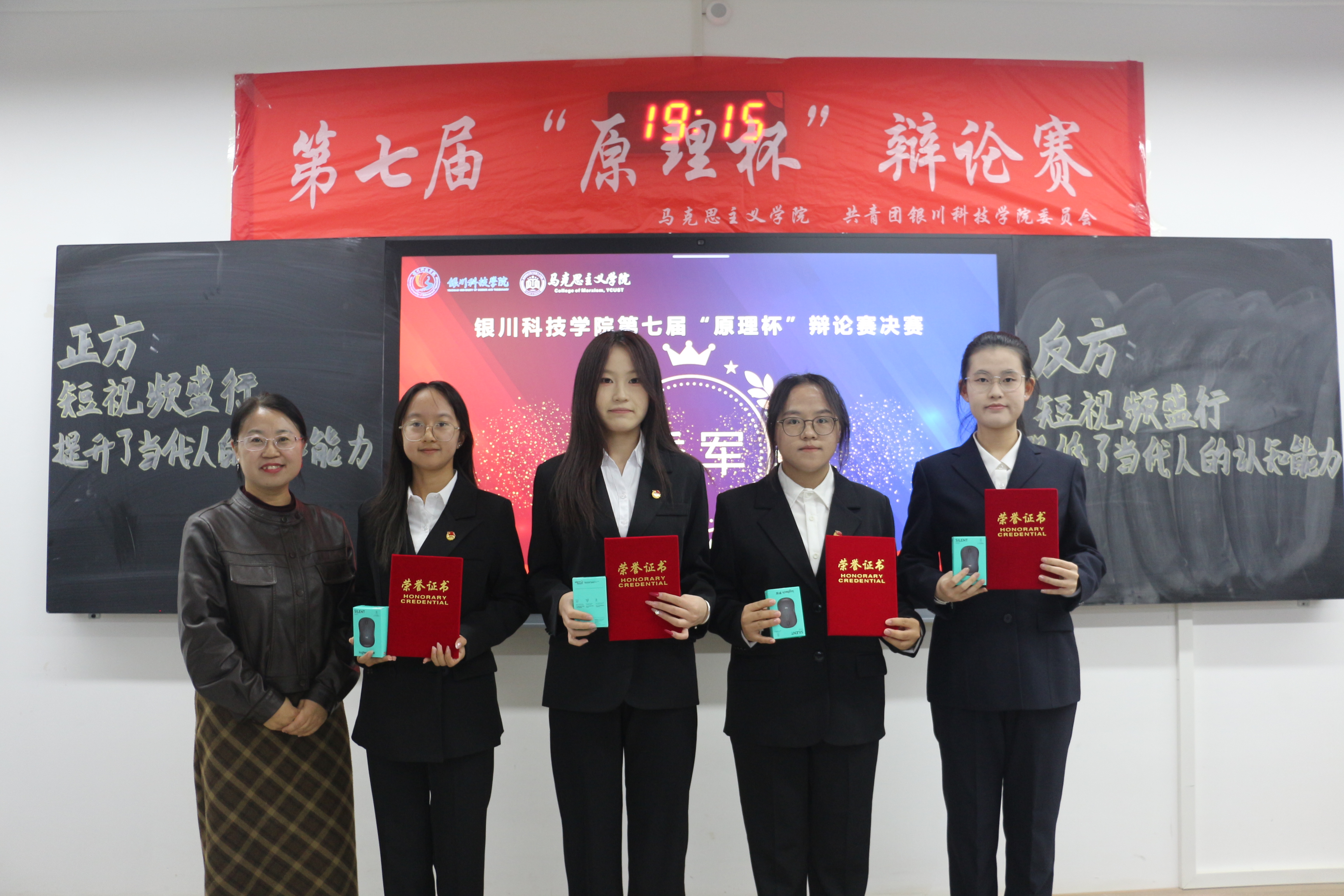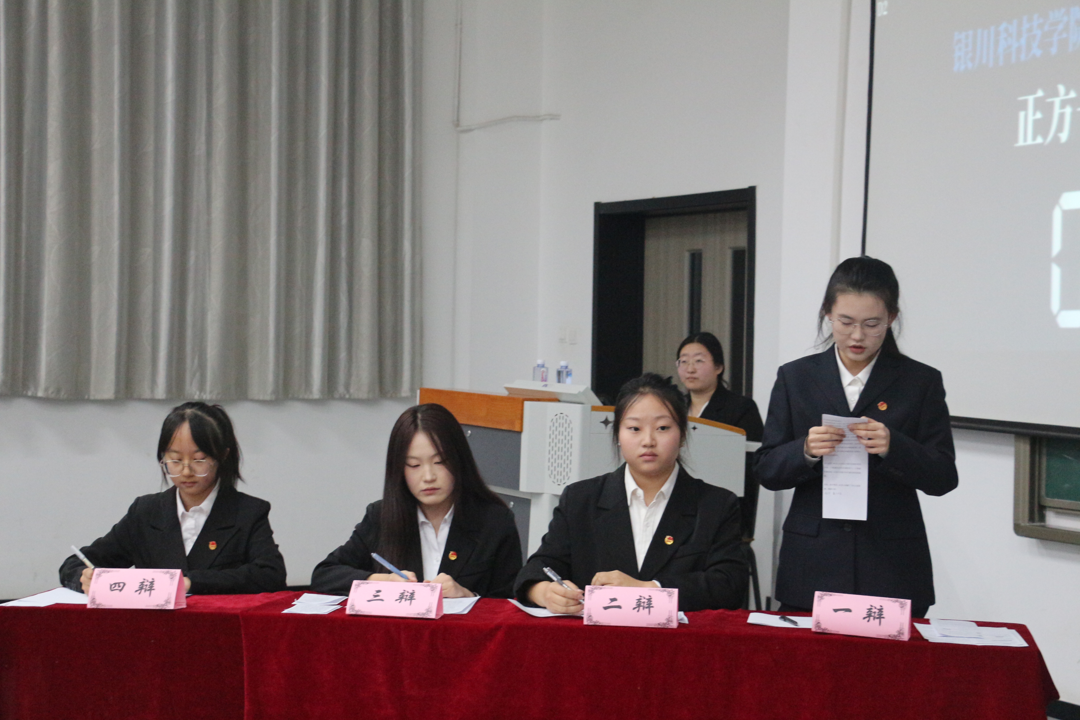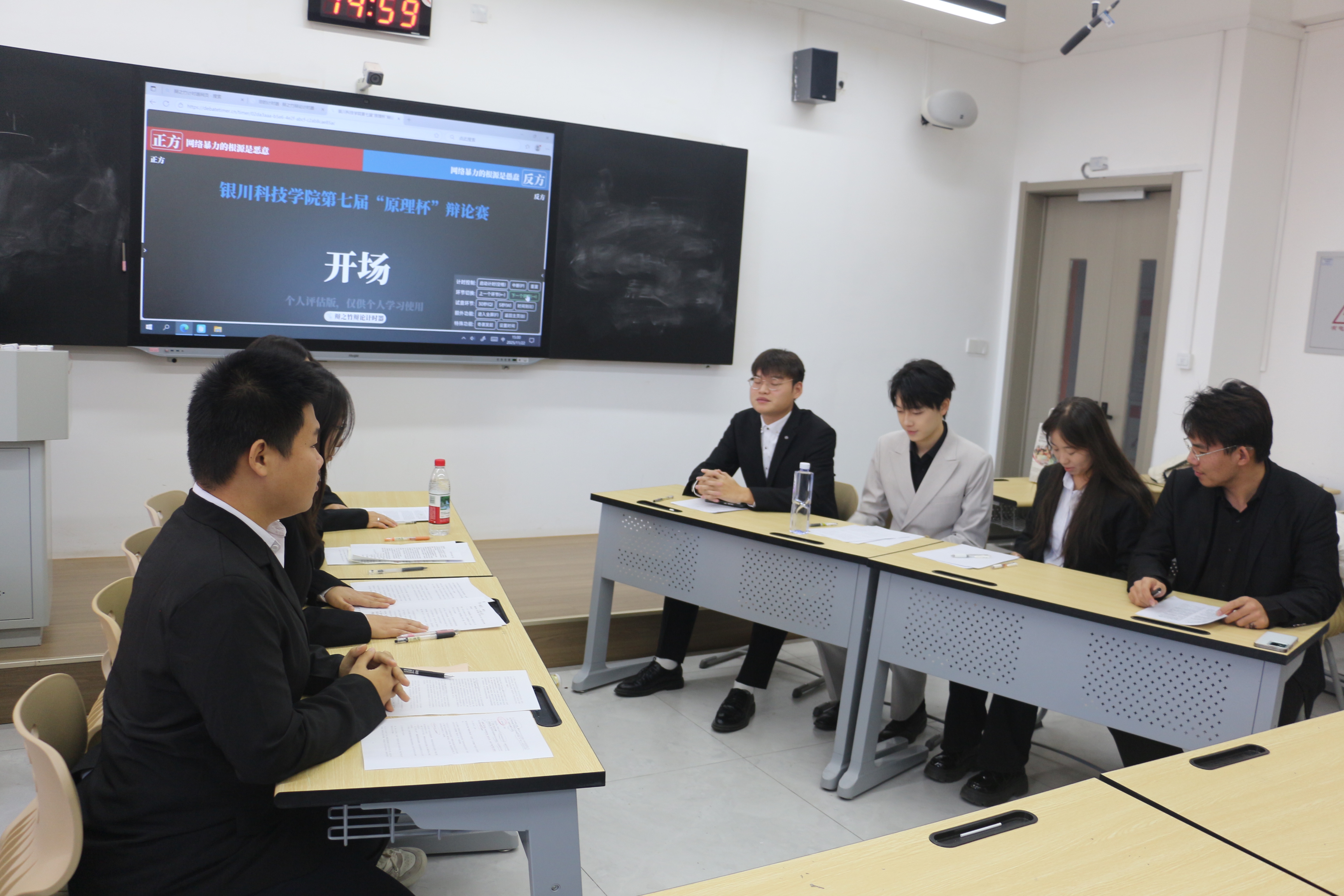 2025年12月2日,银川科技学院第七届“原理杯”辩论赛在A9-211阶梯教室圆满收官。“原理杯”辩论赛是马克思主义基本原理教研室打造的思政实践品牌活动,也是马克思主义学院深化“大思政课”育人体系的重要实践平台,本届赛事以“以辩明思,以论践知”为核心主题,由马克思主义学院主办、共青团银川科技学院委员会协办。自11月15日活动启动以来,吸引2024级32名学子组建8支队伍,历经初赛、复赛、半决赛近半个月的思想淬炼,最终在决赛舞台上呈现了一场理论与实践交融、思辨与成长共生的思政育人实践课。150余名师生代表现场参与,共同见证这场青春与真理的精彩碰撞,感受马克思主义理论在“大思政”格局下的鲜活力量。