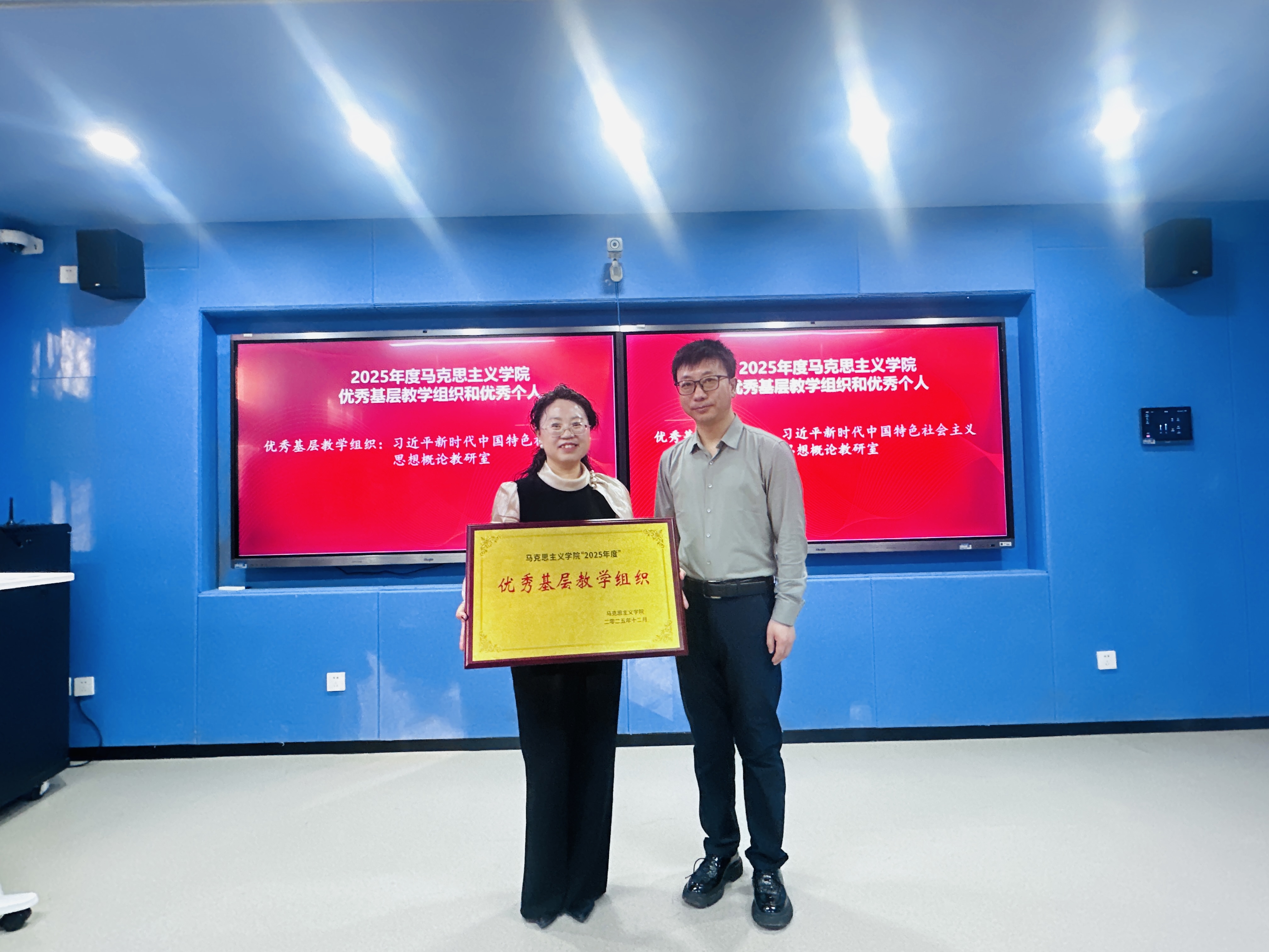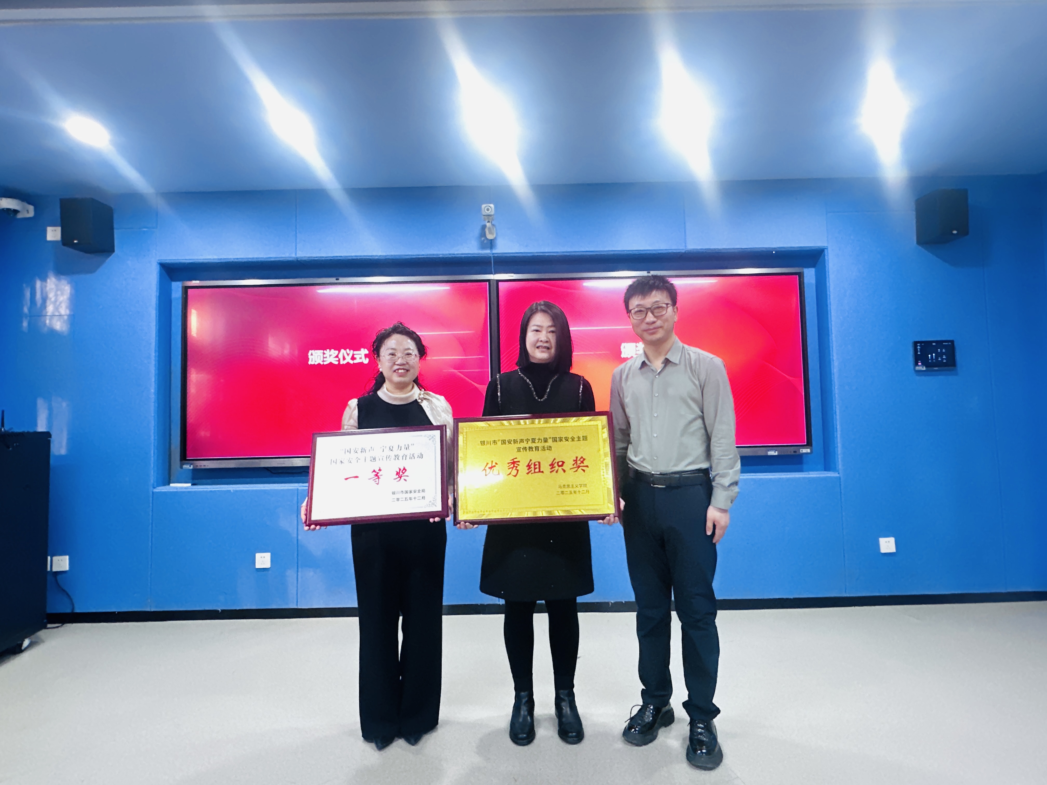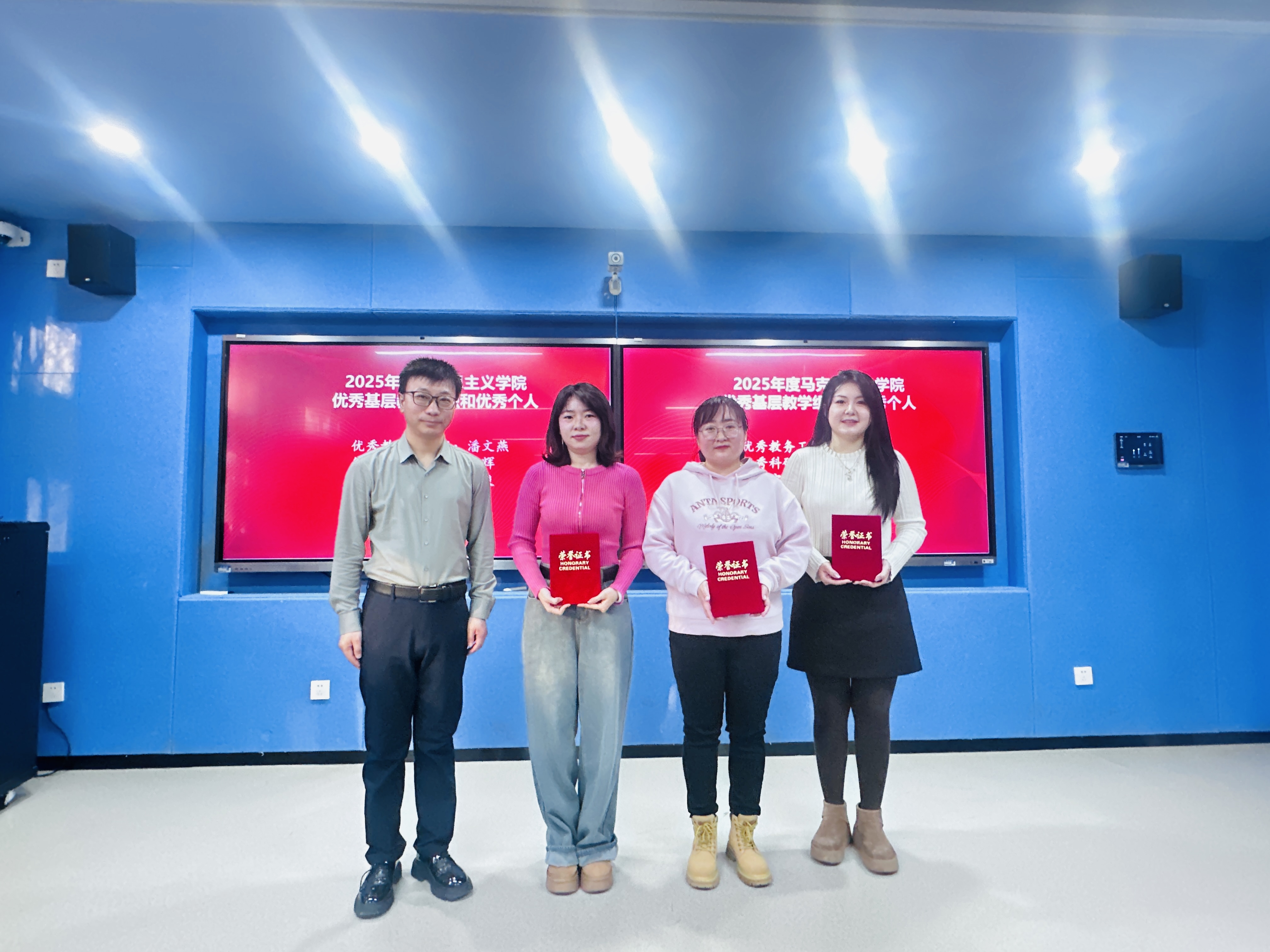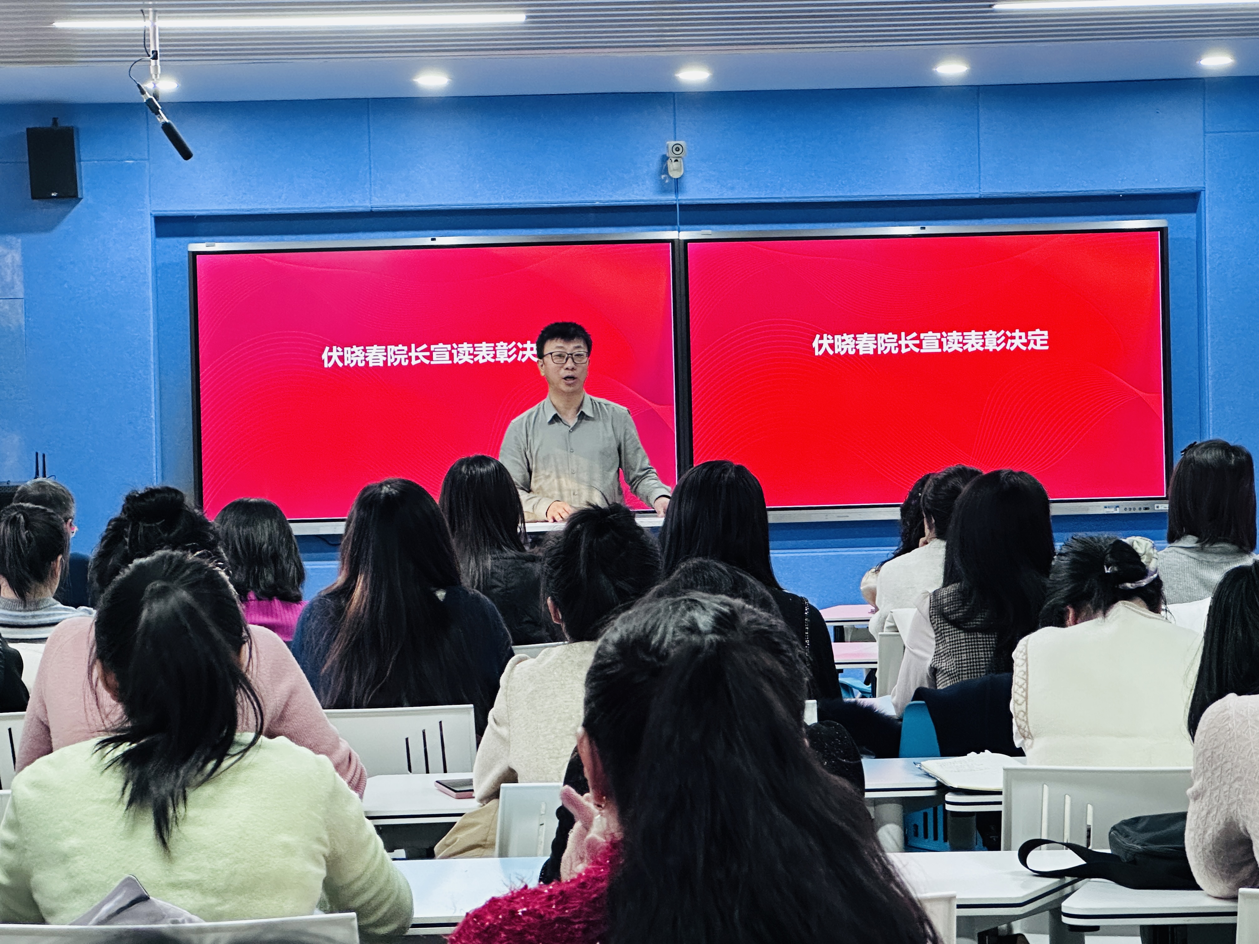 在微课堂精神感召下,伏晓春院长宣读表彰决定,对第六届高校教师教学创新大赛院赛、第五届银川科技学院思政课教师教学竞赛优秀个人,以及2025年度表现突出的优秀基层教学组织、先进个人予以表彰。获奖代表依次登台领奖,现场掌声阵阵。这份表彰既是对耕耘者过往付出的充分肯定,更饱含着学院对深耕思政教育、续写发展新篇的深切期许。