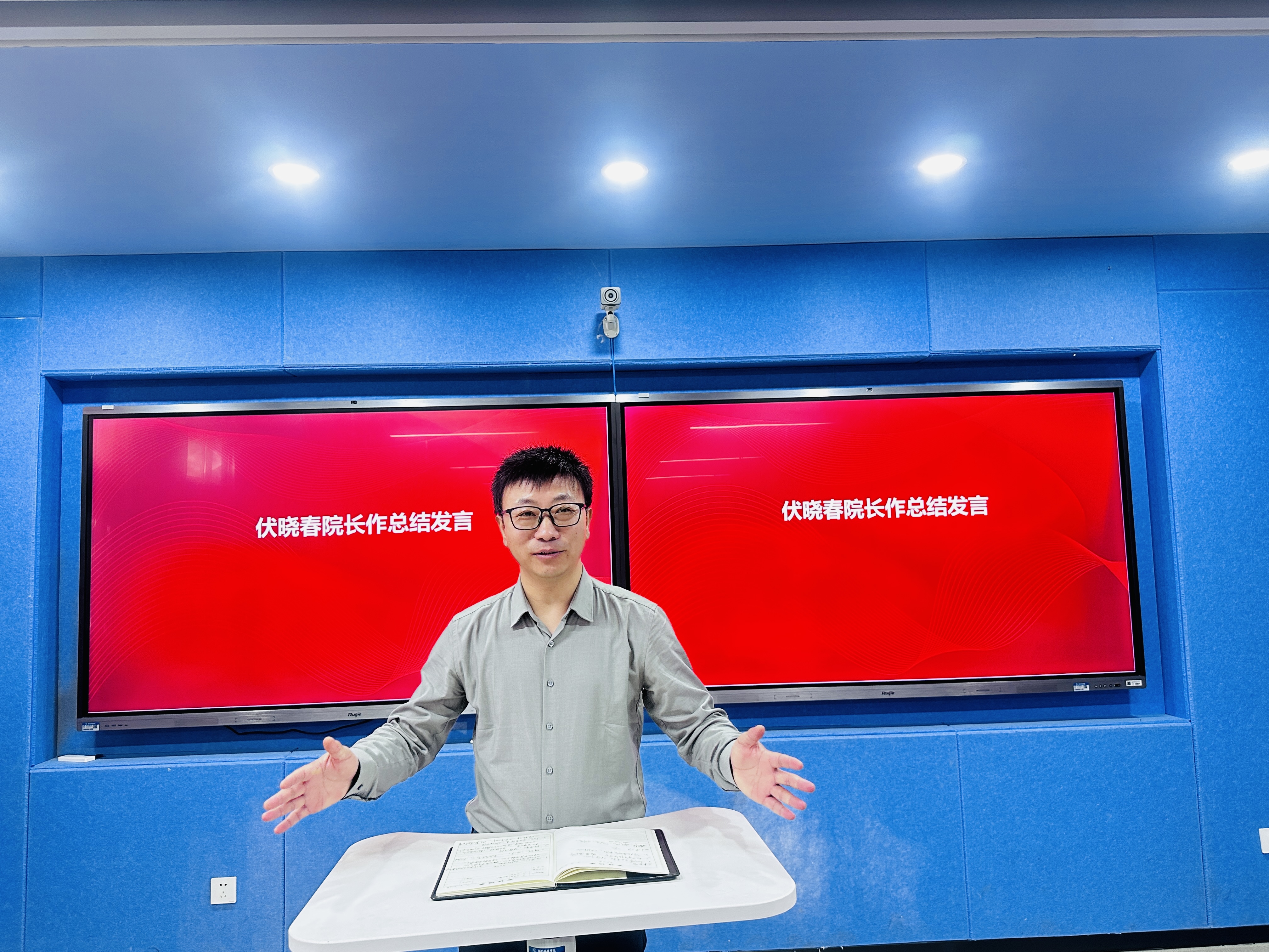 表彰仪式后,伏晓春院长作总结发言。在回顾了2025年学院在教学改革、科研创新、师资梯队建设、思政阵地守正创新等方面的丰硕成果后,伏晓春院长深情致谢每一位‘追光者’的并肩前行、每一份‘守护者’的深情付出,强调正是这份同心聚力,才凝聚成学院蓬勃发展的磅礴力量,支撑全院在攻坚克难中书写了不负时代、不负使命的奋进篇章。立足过往成就,伏晓春院长嘱托全体教职工永葆教育初心,锚定新时代思政教育使命坐标,明确2026年重点发展方向:学院将主动响应国家与学校号召,设立院级教改与科研项目,鼓励全体同仁主动提升专业素养;同时将聚焦教学创新大赛、实践教学等关键领域精准发力,持续深化教育教学改革、拓展开放合作维度、强化马克思主义理论学科核心建设,真正实现以科研赋能教学、以教改驱动质量提升。紧扣蓝图,伏晓春院长号召全院同仁以“功成不必在我”的境界和“功成必定有我”的担当,同心同德深耕思政教育沃土,共同推动学院高质量发展,书写新时代思政教育崭新篇章。