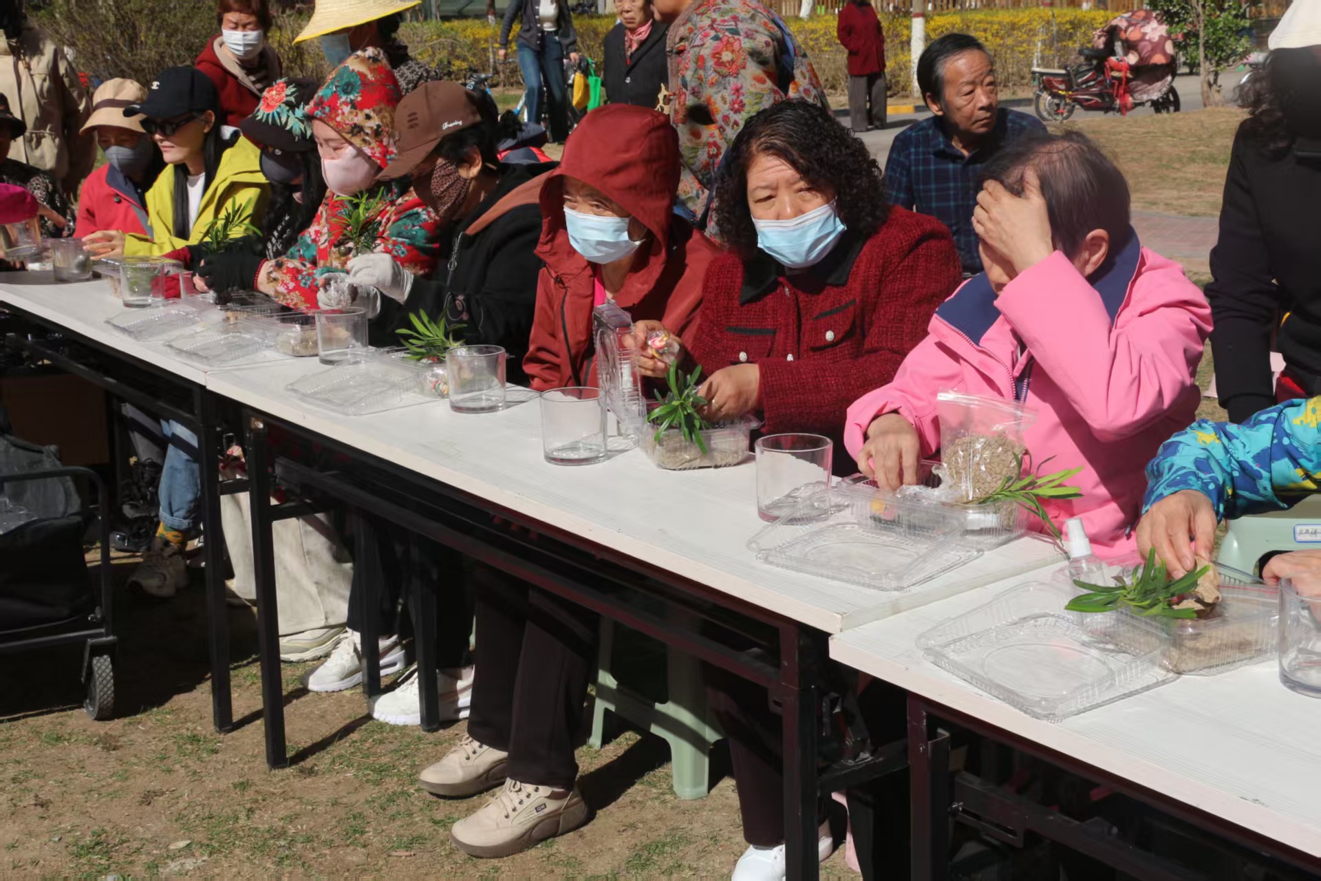 活动现场气氛庄重而热烈。社区特邀朗诵者深情诵读,缅怀为盛世中华献出生命的革命先烈,让英烈精神深入人心;社区工作人员与特警队员依次登台,以饱满的热情展现责任担当与昂扬风貌。我院师生也积极参与其中,用真挚的声音表达对先烈的追思与敬意,让红色基因在声声诵读中代代相传。随后,诗词飞花令将活动推向高潮,宁夏大学师生、我院学生代表与特警同台竞技,大家踊跃对答,在经典诗词中感受中华优秀传统文化的深厚底蕴。活动最后,大家共同参与盆栽栽种实践,亲手培土、栽苗、浇水,在沉浸式劳动中体悟耕耘之乐,厚植绿色环保理念。