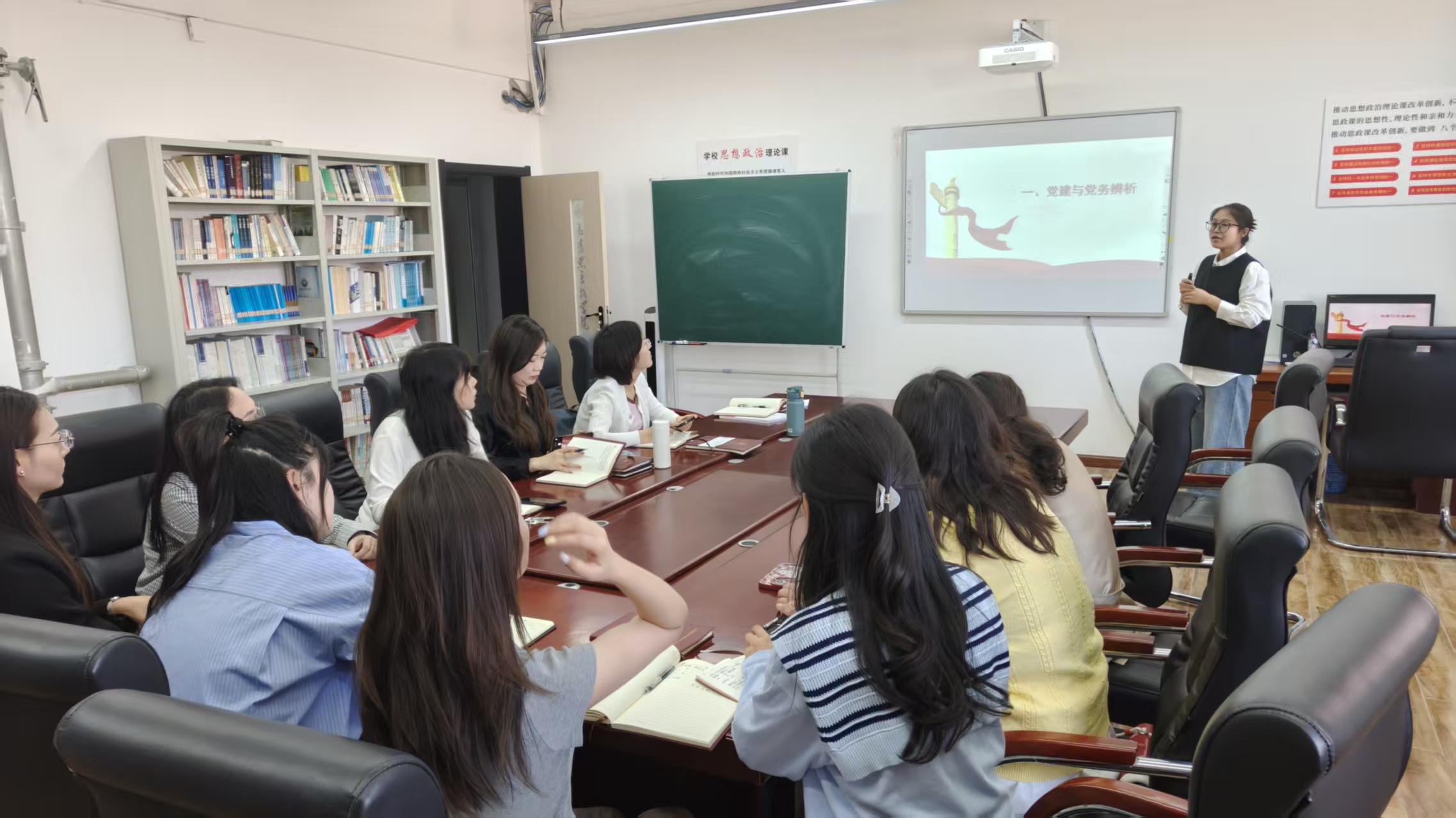 为深入学习贯彻习近平新时代中国特色社会主义思想,全面提升学院党务工作者的专业素养与履职能力,夯实基层党建工作基础,4月17日下午,马克思主义学院党总支特邀学校党委办公室丁妍妍老师在AI-510开展党务党建工作专题培训。学院党总支委员、各党支部书记、支委委员参加了此次培训。