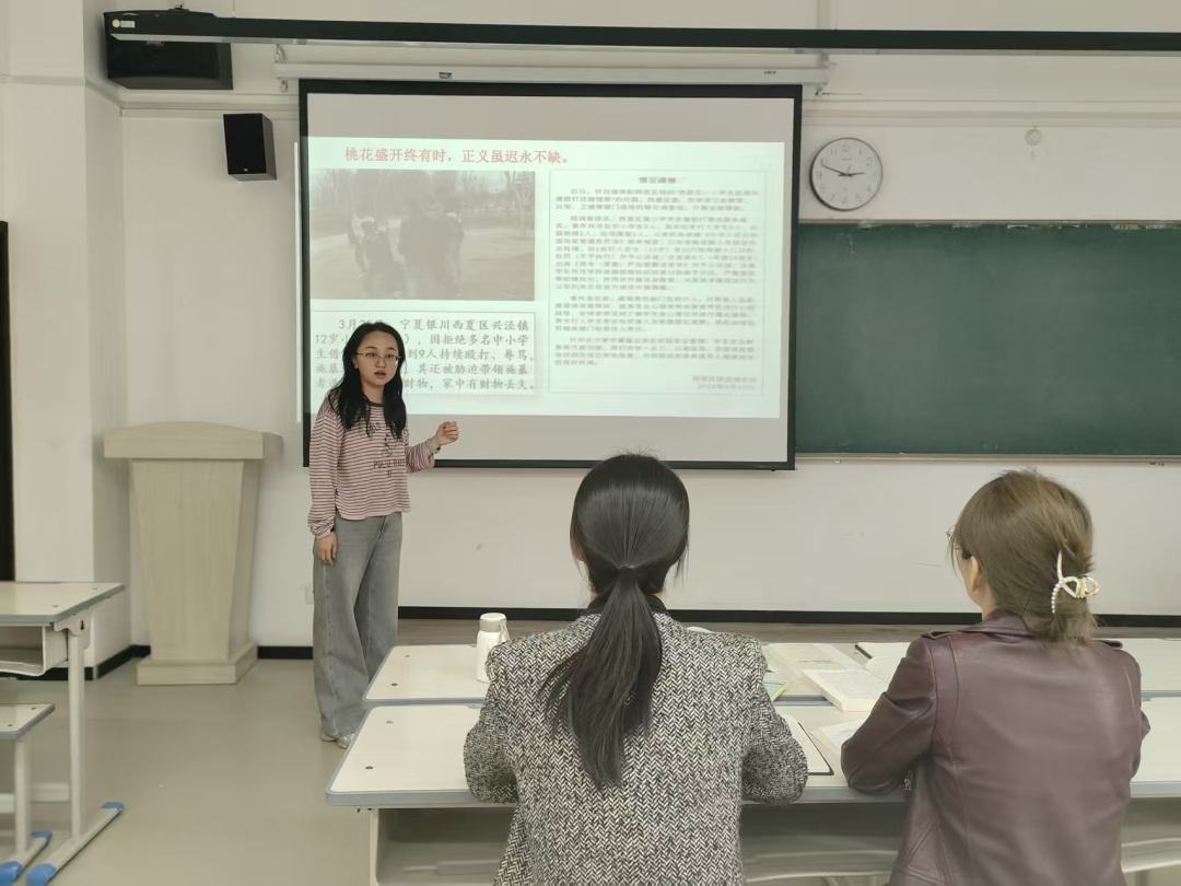 活动现场,教研室全体教师分为两组研读《怎样讲好思政课的“道理”》。明理笃行组紧扣思政课“讲准、讲全、讲清、讲实、讲深、讲透、讲活”七项要求,立足课堂教学痛点,围绕问题导向、案例运用等实操教学策略深入研讨、交流经验。读案悟理组聚焦“把道理讲活”这一核心,深挖理论教学转化路径。其中,蒋丹阳老师结合银川本土法治典型案例以案释法,巧用鲜活素材增强课堂感染力,推动思政理论教学贴近现实、贴近学生。分组研讨结束后,全体教师开展跨组交流、互学互鉴,进一步明晰教学改进方向与实践路径。